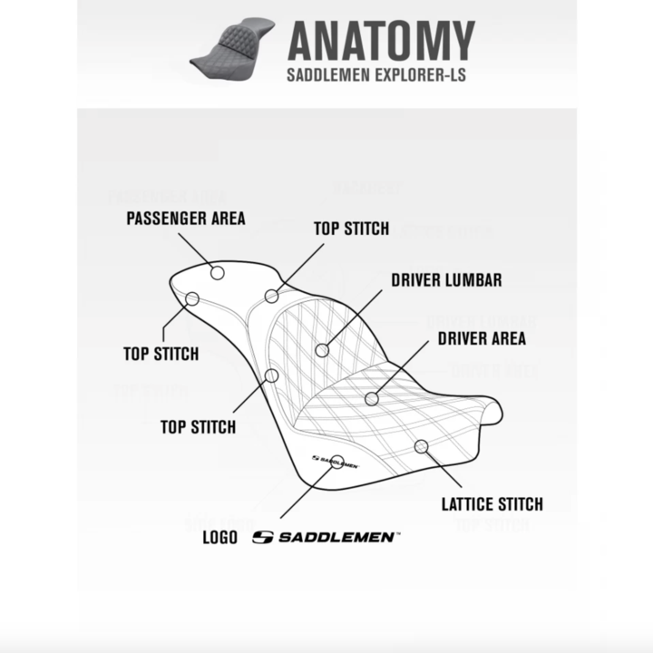 The hand-crafted cover includes our classic stitch-top. Under the seat's cover lays a plush layer of headliner foam for a supple touch. Beneath that comes another key comfort ingredient: large pads of Saddlemen's ® proprietary SaddleGel™ that damps vibration while providing outstanding supportive qualities. A foundation of our progressive density foam is the suspension system of the seat, offering steadfast support that will not break down after long miles or many years of use.