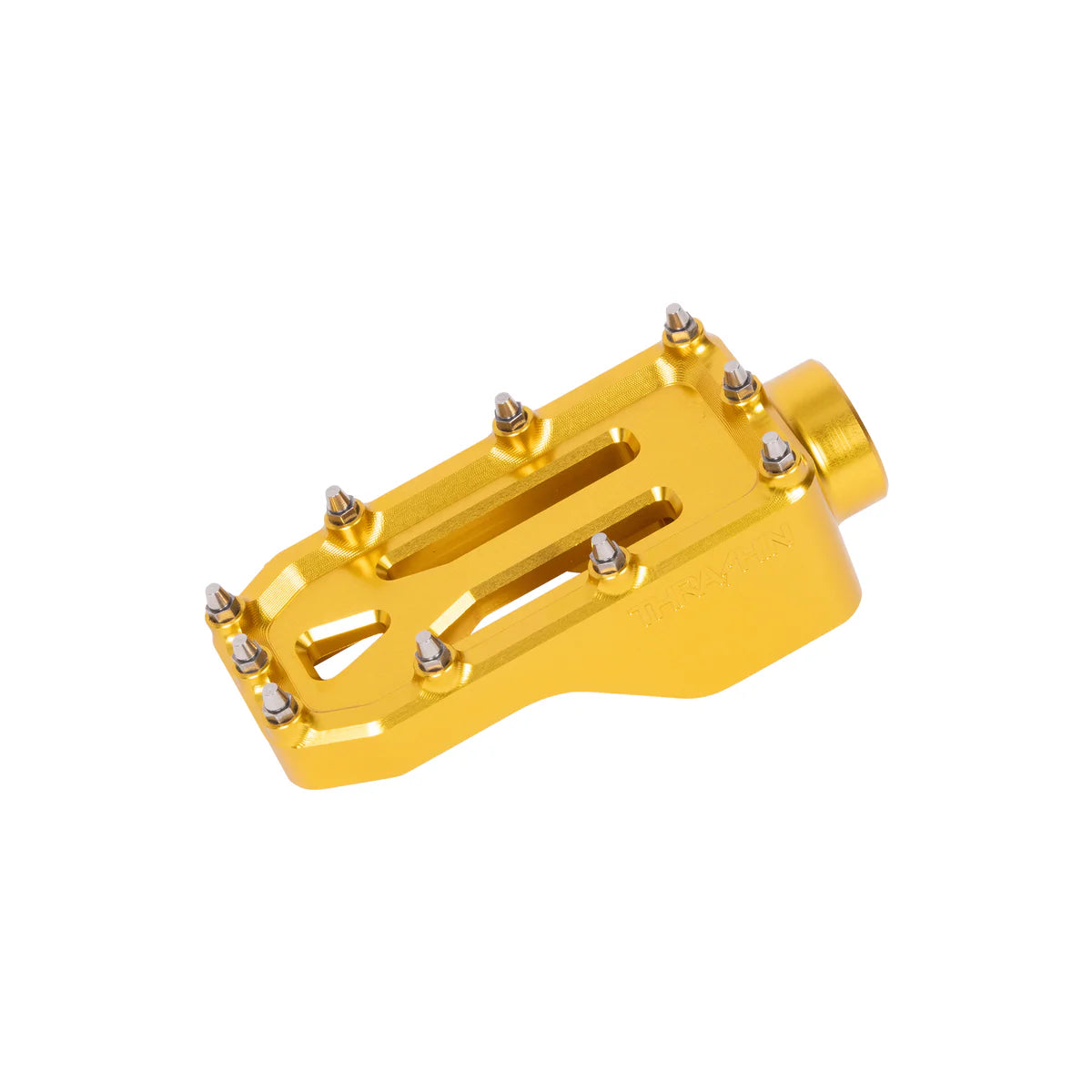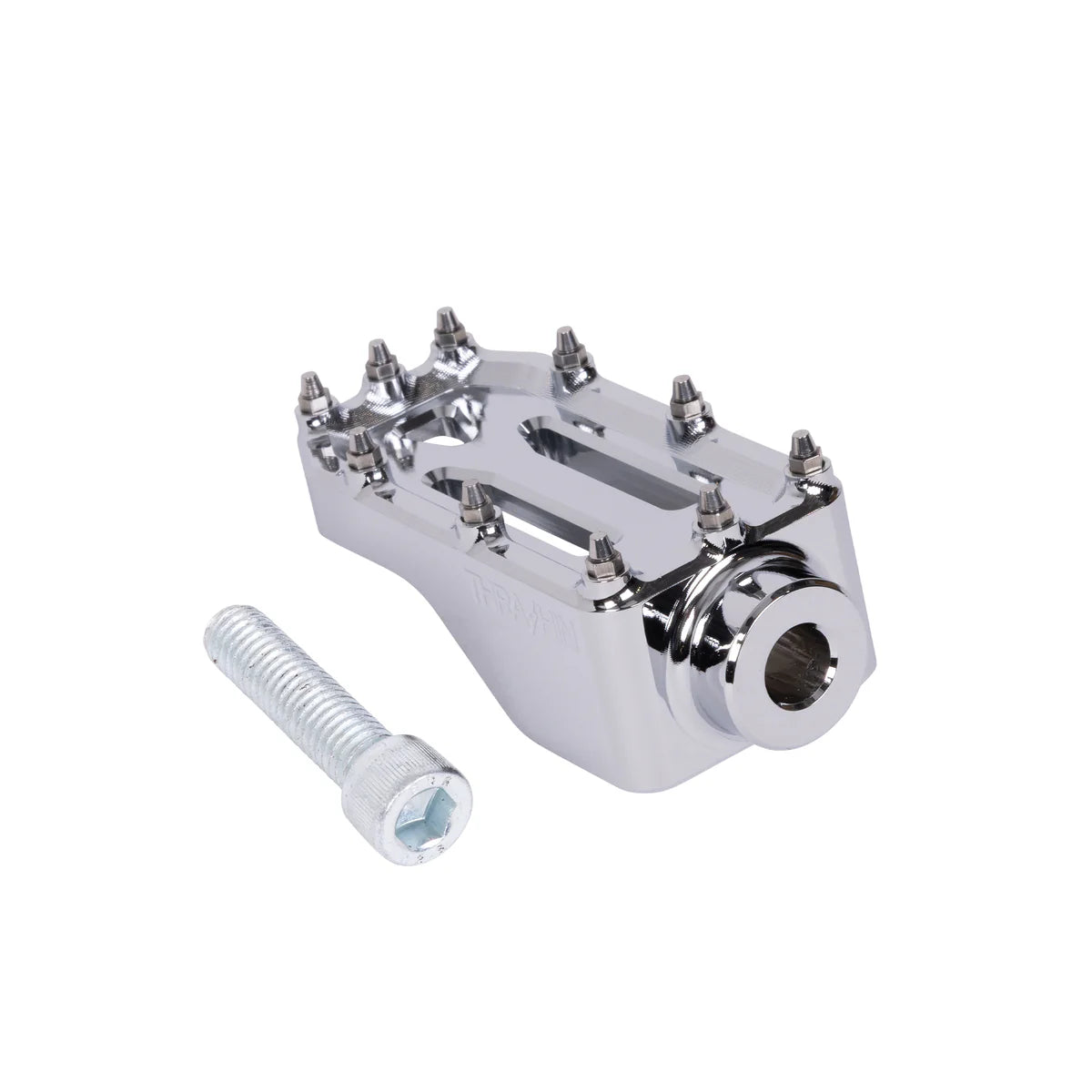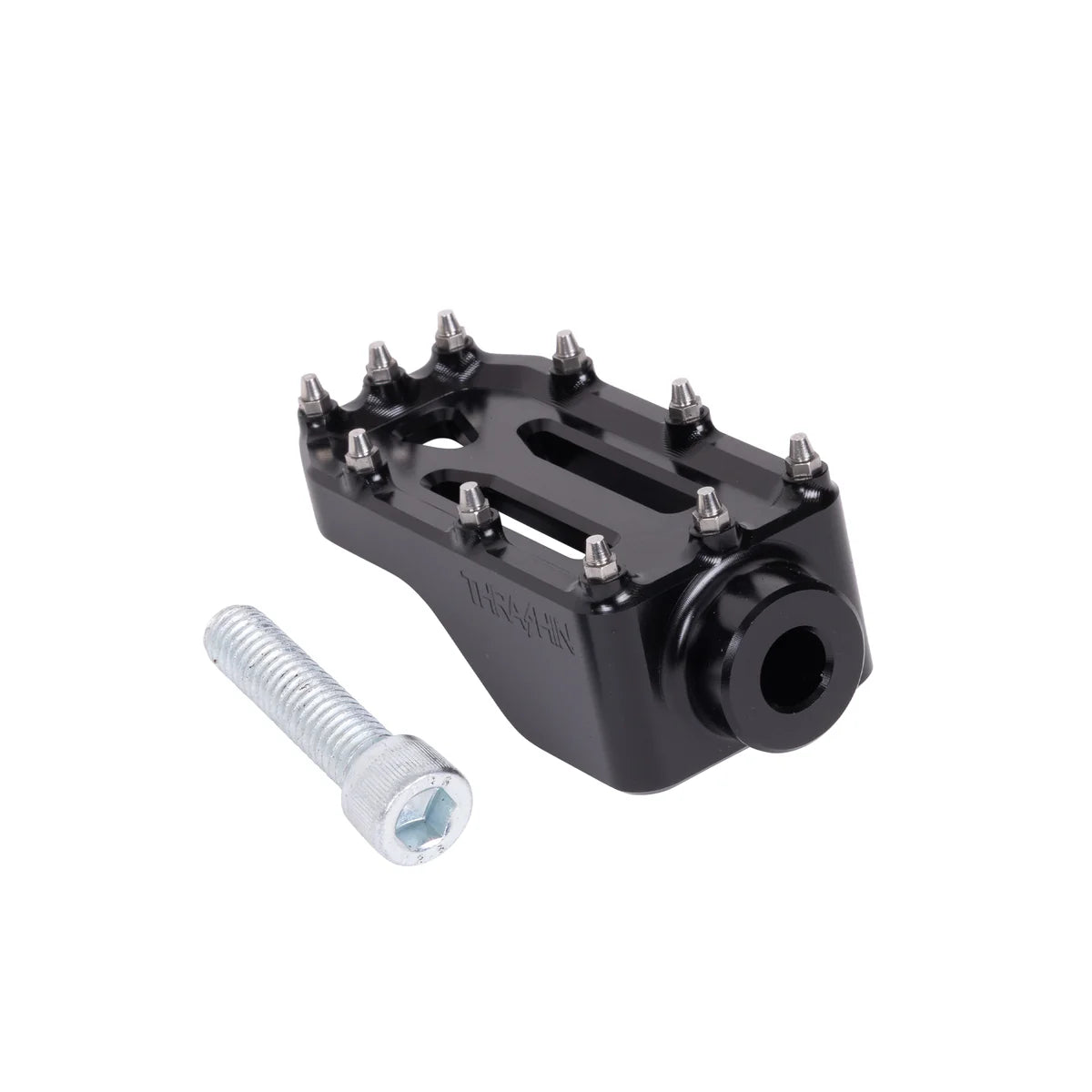 Grab a THRASHIN® Aggressor Brake Arm Pedal to complete your kit and never let your foot slip. Slim profile yet adequate surface area and 10 cone-shaped stainless steel cleats. This pedal is the perfect addition to our Adjustable Bagger Brake Arm.
