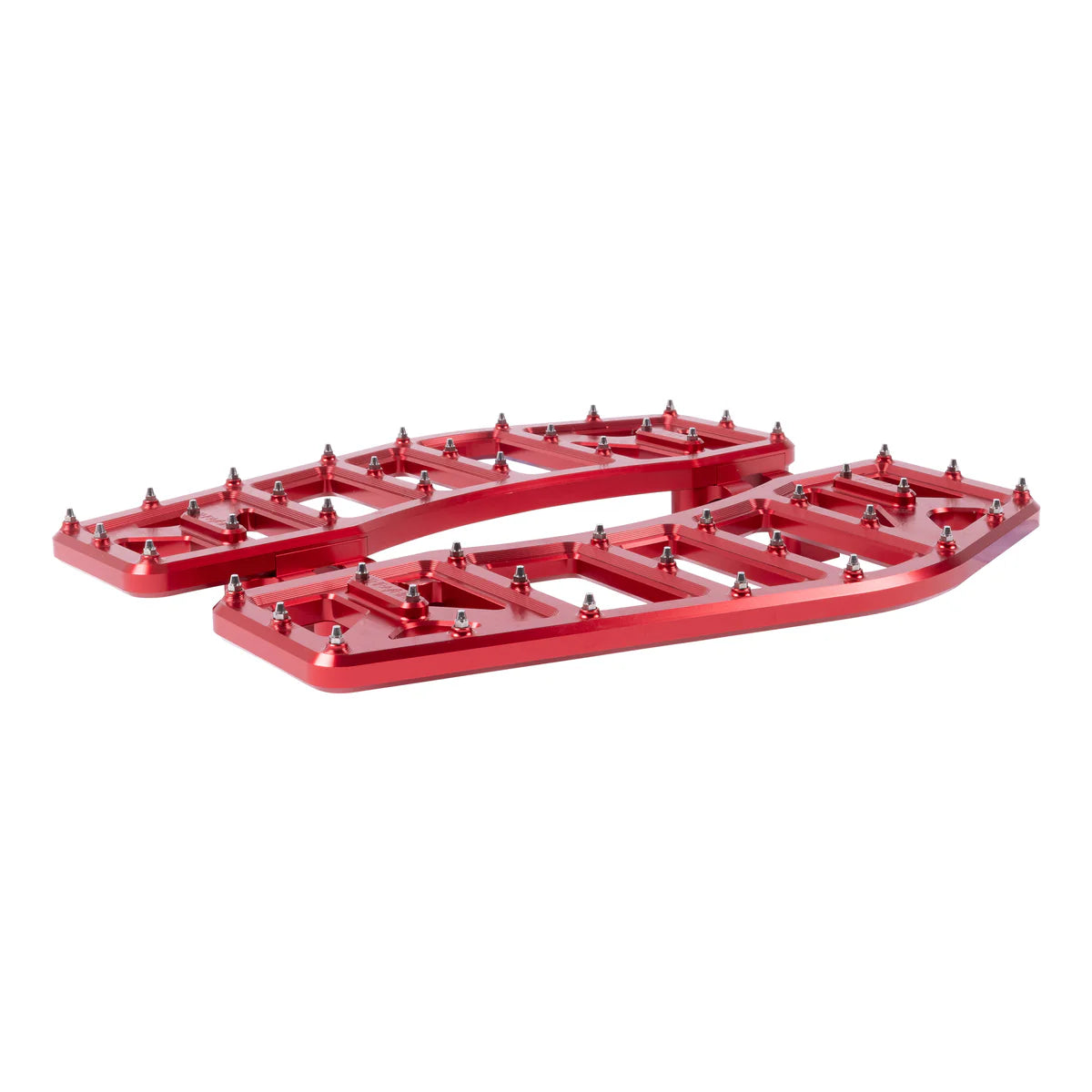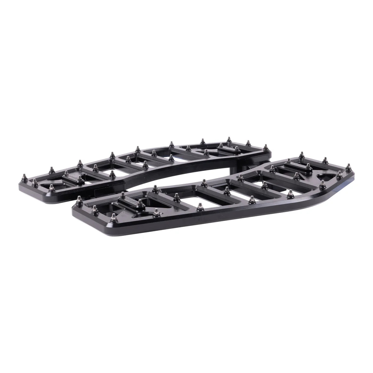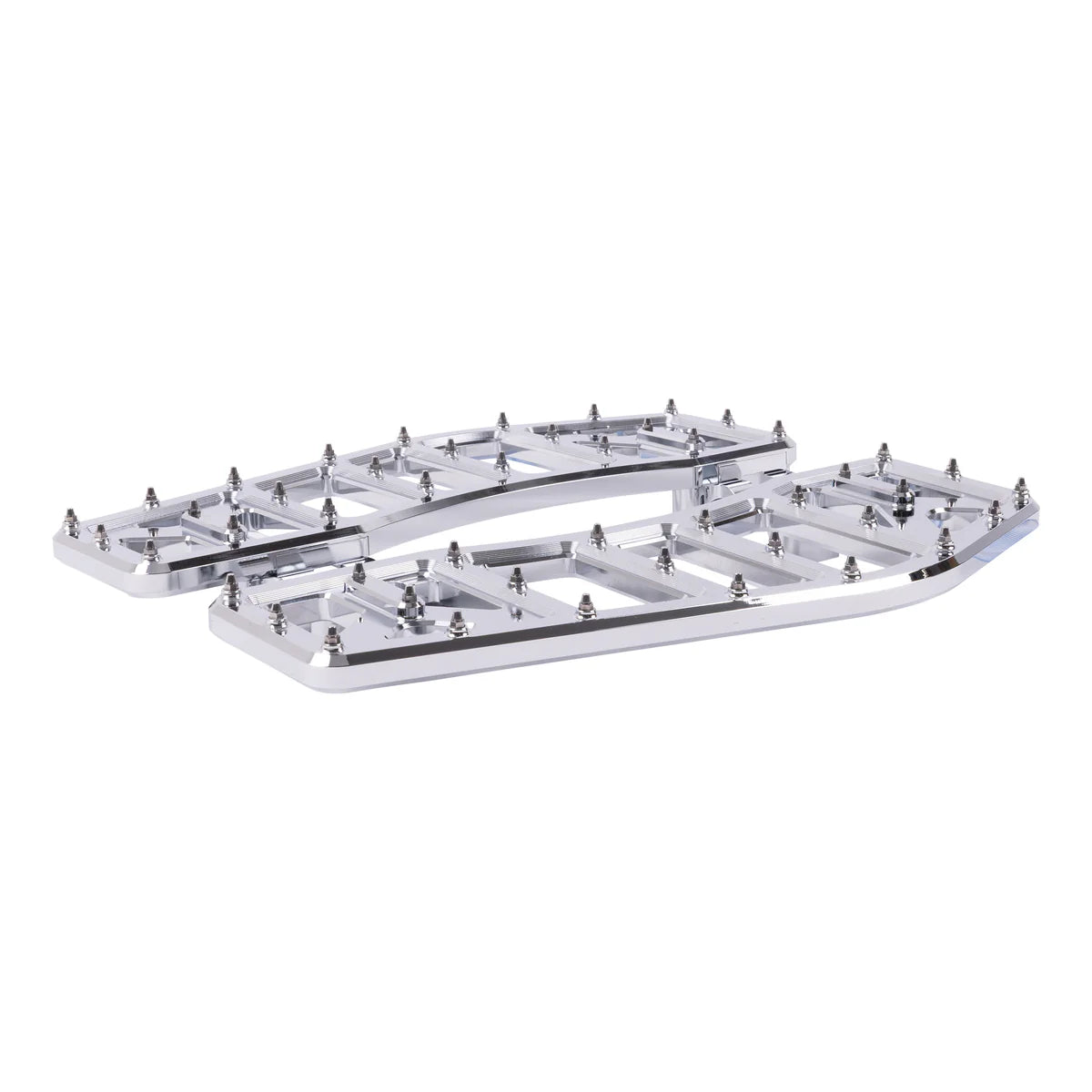 The THRASHIN® Aggressor Floorboards are designed to provide the maximum amount of grip and improve ground clearance while maintaining a sleek and timeless design. Featuring 24 cone-shaped stainless steel cleats per floorboard, and placed on our larger foot-shaped platform, these boards not only look great but will improve the feel of your motorcycle.