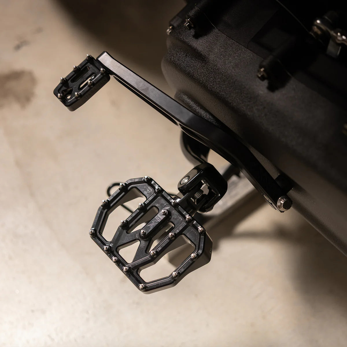 The THRASHIN® Mini Aggressor Floorboards are designed to provide the maximum amount of grip and improve ground clearance while maintaining a sleek and timeless design. Featuring 20 cone-shaped stainless steel cleats per floorboard, and placed on a mini floorboard shape. These boards not only look great but will improve the feel of your motorcycle.