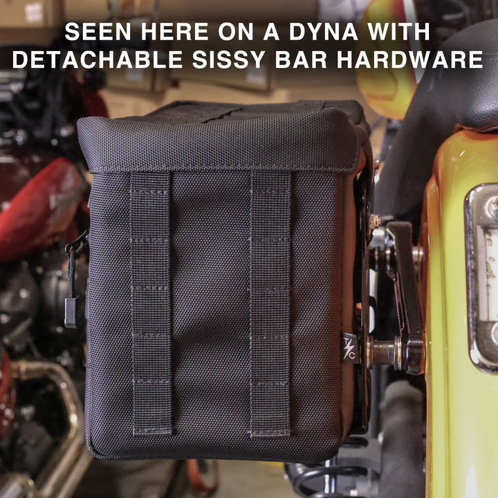 Sissy Bars: Will work with both hard mount and detachable sissy bars. May require additional hardware to pair with your docking hardware.