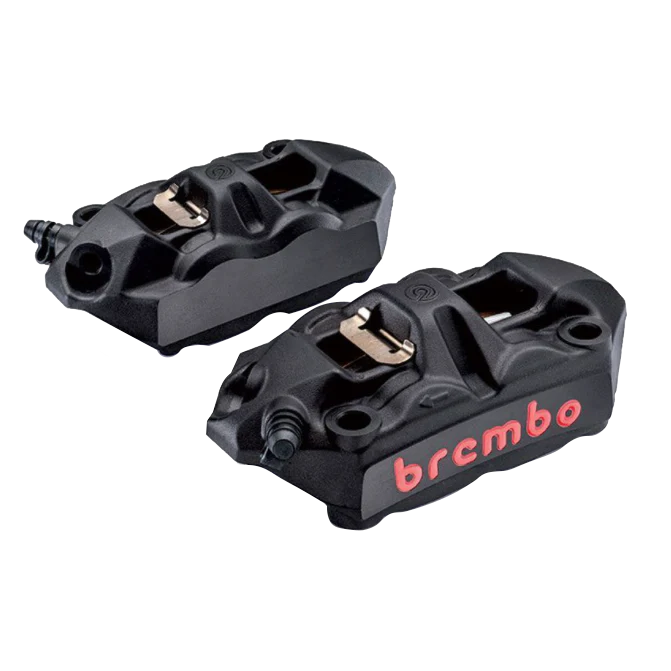 Lyndall Caliper Set, P4 34mm, M4, Cast Monobloc, 108mm Radial Mount, Front, Black w/ Red Lettering